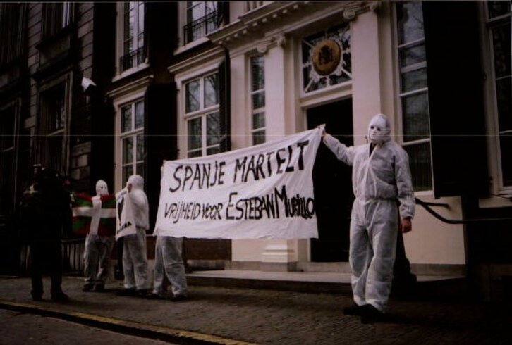 Esteban Murillo euskal errefuxiaturen estradizioaren aurkako ekintza Amsterdamen.