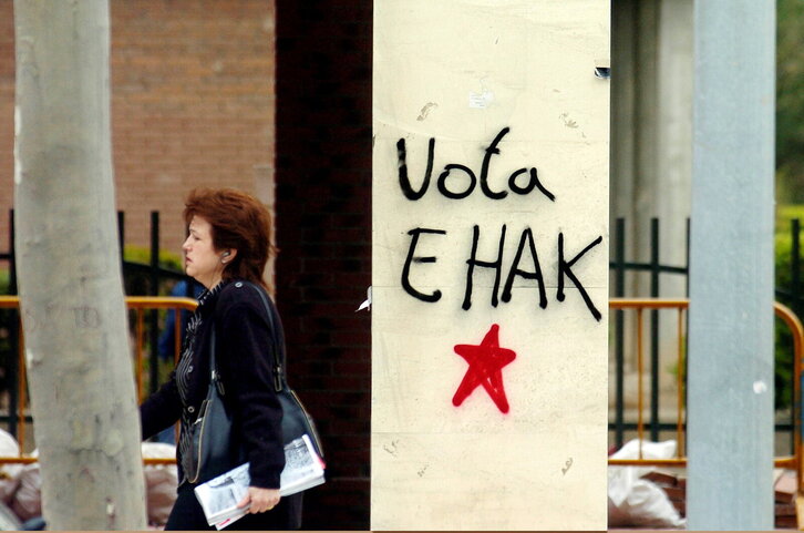 EHAK alderdiaren aldeko botoa eskatzen duen pintada Gasteizen.
