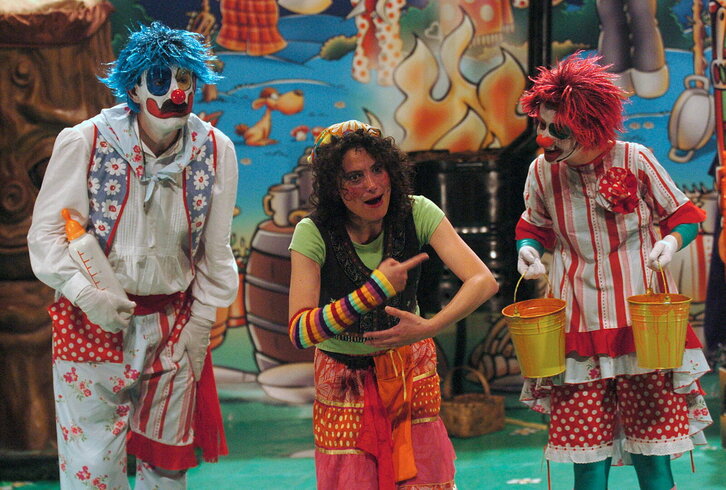 Pirritx, Porrotx eta Marimotots pailazoen 'Maite zaitut' ikuskizun berriaren grabazioa Bastero Kulturgunean.