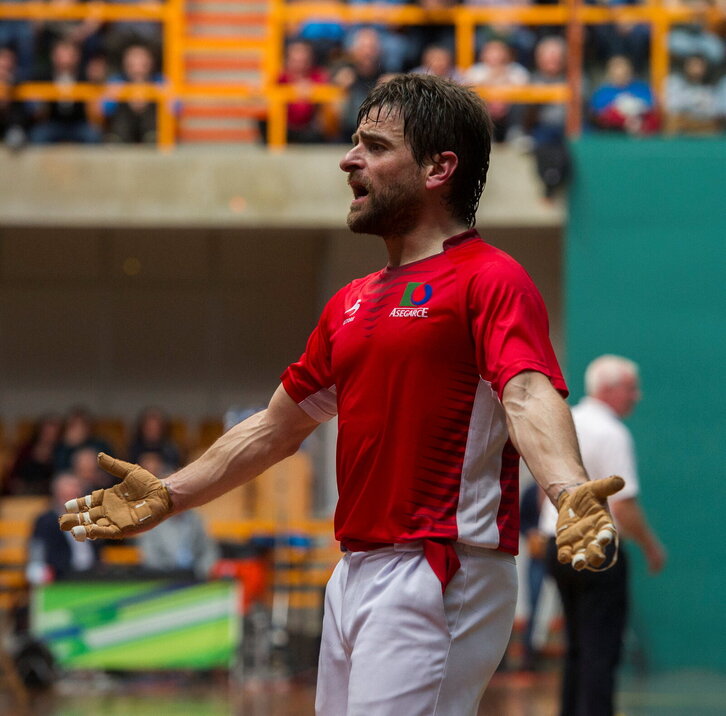 Berasaluze II.a Eskuz Binakako finalerdietako partida irabazi ondoren, Gasteizko Ogeta pilotalekuan.