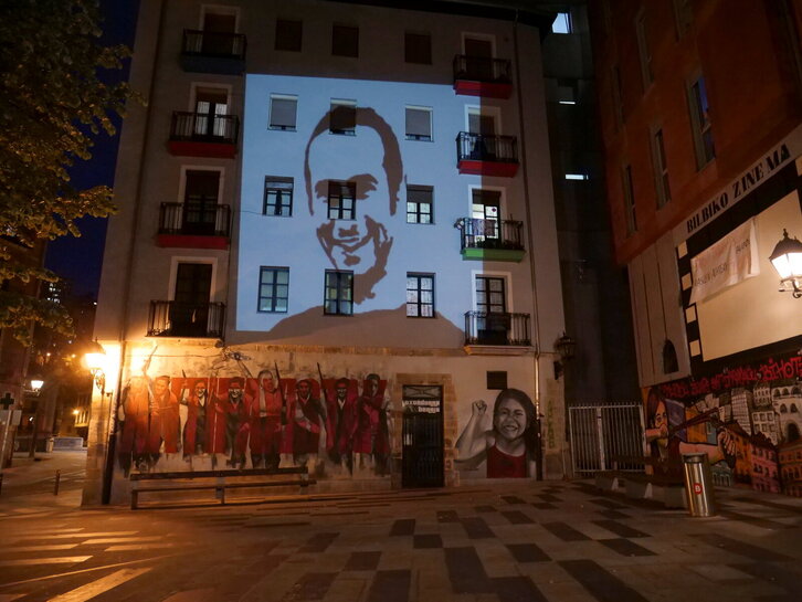 Iñigo Cabacasen heriotzaren 8. urteurrena dela eta 'Proiektatu Iñigoren aurpegia eraikinetan' ekimenam egin dute.