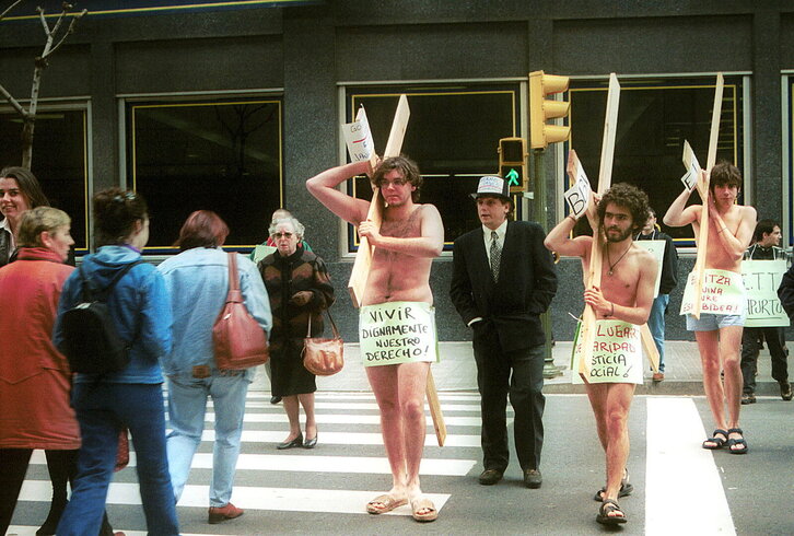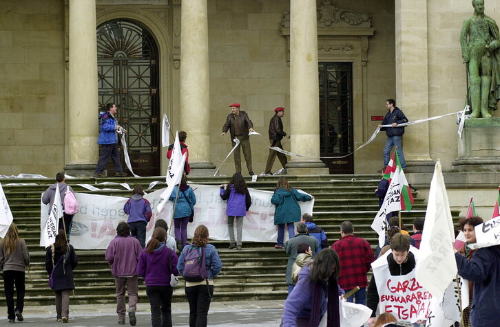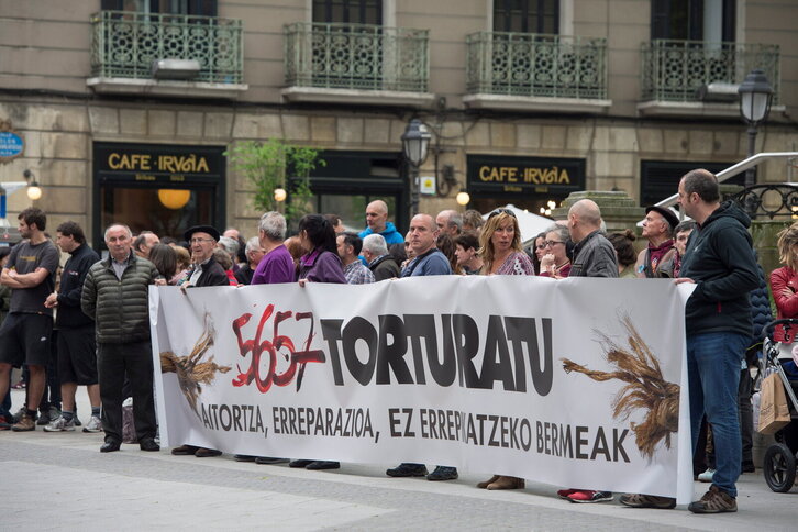 Unai Romanori egindako torturen aurkako protesta Gasteizko Parlamentuaren aurrean.