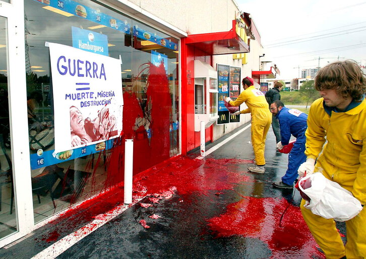McDonaldsen aurkako pintura jaurtiketa EEBBek Iraken eragindako bonbardaketen aurka, Sestaon.
