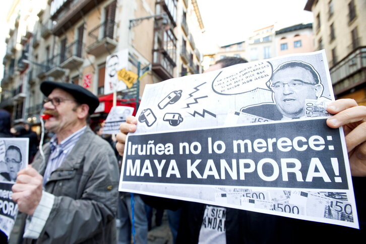 Enrique Mayaren dimisioa eskatzeko txistualdia antolatu dute Iruñeko udaletxe aurrean.