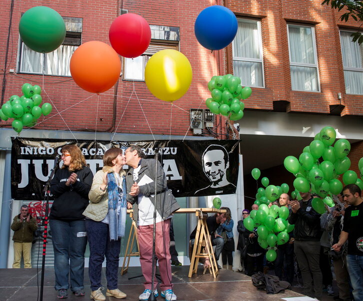 Iñigo Cabacas hil zela hiru urte igaro direnean omenaldia egin diote Diaz de Haro kalean, ertzainek jaurtitako pilotakada jaso zuen tokian.
