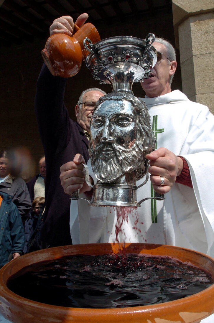 Obanos herriko ardo bedeinkatzea, San Gillermo garezurraren erlikiatik pasatuz, edatean gaixotasunak sendatzeko.