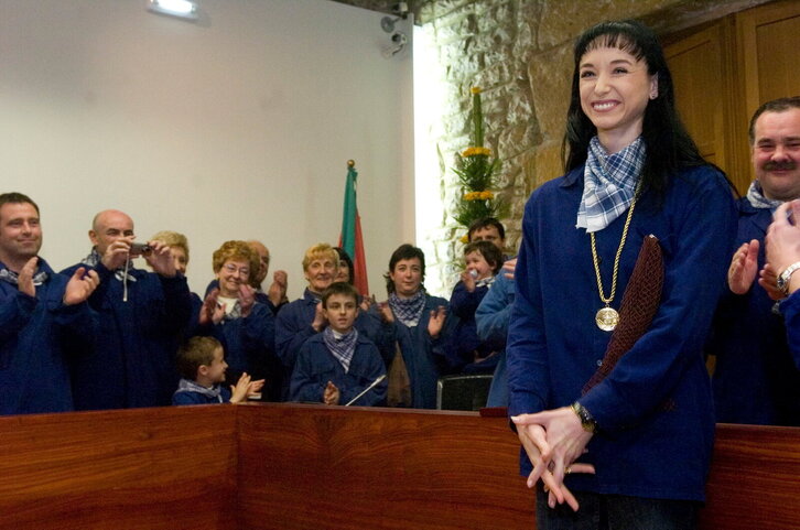 Lucia Lacarra dantzaria Zumaiako urrezko domina jasotzen.
