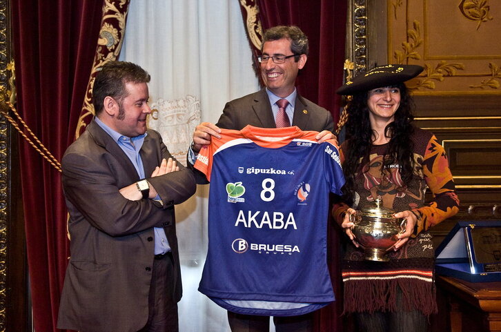 Esmeralda Lopez Akaba eskubaloi taldeko kapitaina Gipuzkoako Foru Aldundiko harreran XXX. Erregina Kopa irabazi ostean.