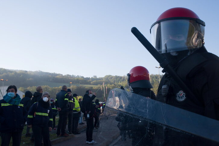 Ertzaintza Amurrion Tubacexeko langileen protestan 129 kaleratze egitekoak diren egunean.