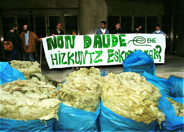 Euskal Herrian Euskaraz ekimenak antolaturiko protesta, Bilboko Eusko Jaurlaritzaren egoitzan.