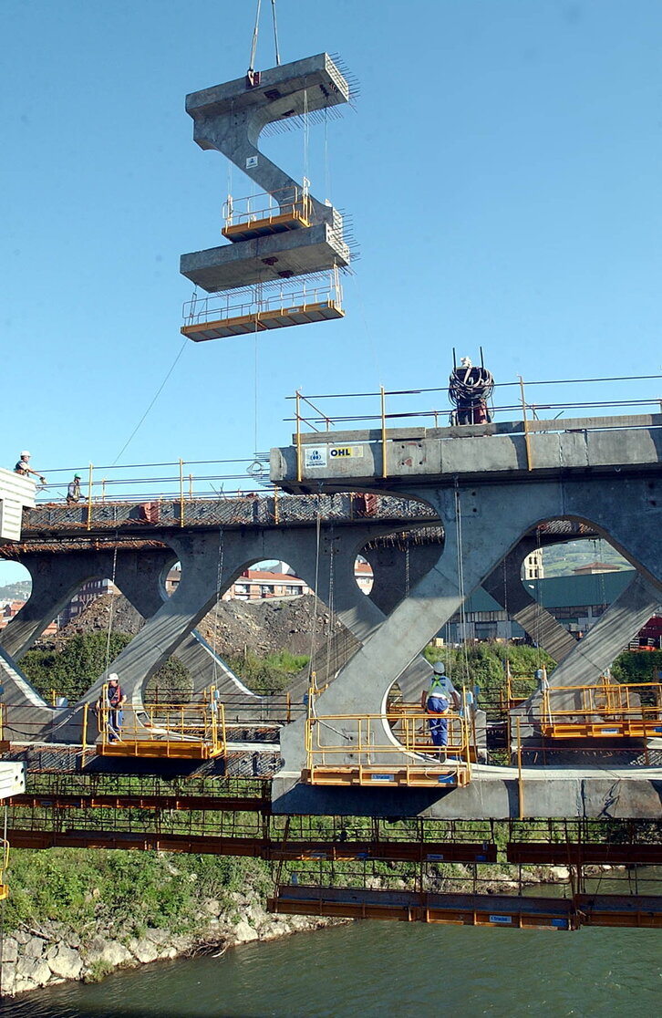Etxebarri eta Basauri artean eraikitako trenbide zubiko lanak amaitzen.