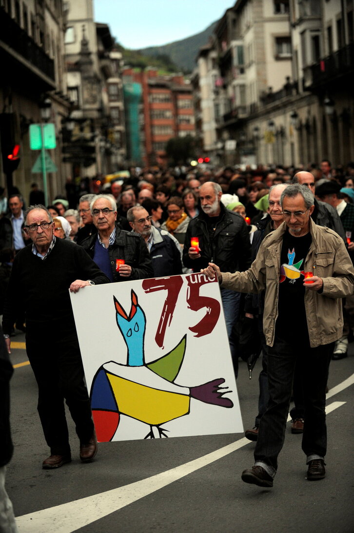 Gernikako bonbardaketaren 75. urteurrenean Gernikan antolaturiko manifestazio isilaren irudia.