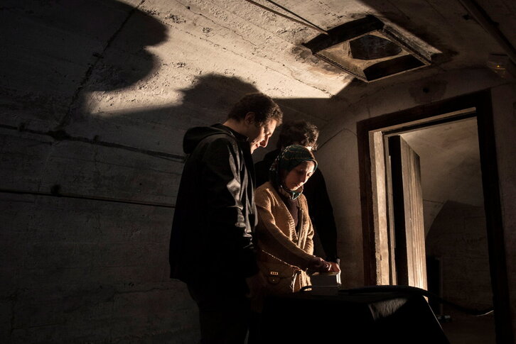 Siriako bi errefuxiatuk Astrako bunkerretik sirena jotzen Gernikako bonbardaketaren 79. urteurrenean.