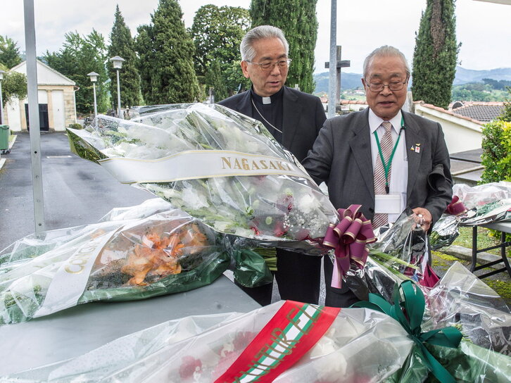 Gernikako bonbardaketaren 80. urteurrenean biktimei omenaldia Zalloko hilerrian. Irudian, Nagasakiko delegazioa.