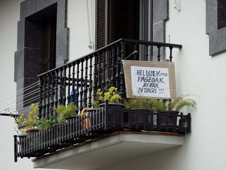 Covid-19. Haurrak lehen aldiz kalera irteten gurasoekin Hernaniko alerta egoeran.