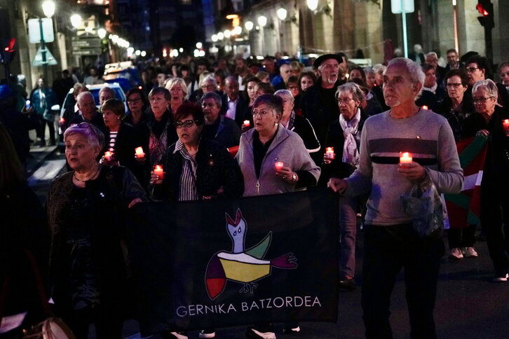 Gernikako bonbardaketaren 80. urteurrenean manifestazioa kandelekin.
