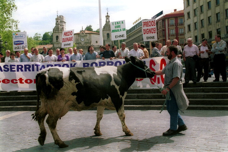 EHNEko baserritarren protesta esnearen sektoreko egoera salatzeko.