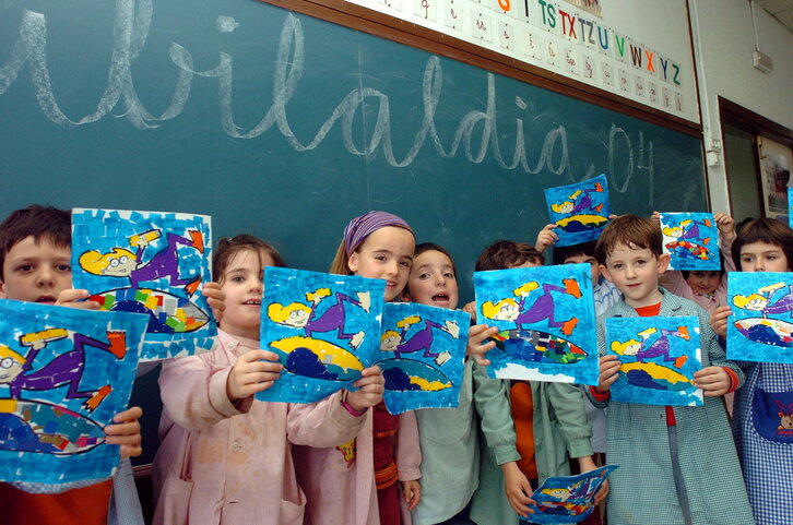 Ibilaldia antolatzeko ardura duen Leioako Betiko ikastolako ikasleak.