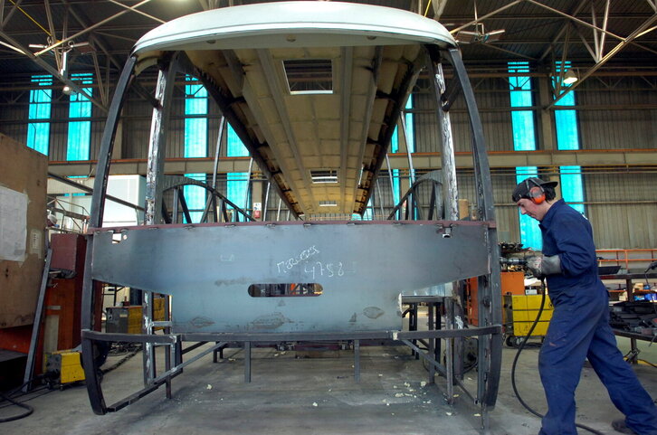 Lehergailu bidezko erasoa jasan duten Amenabar enpresako eskabadorak Hernani pareko autobiako lanetan.