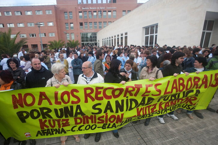 Osasun Publikoko murrizketen aurkako kontzentrazioa Iruñeko Bideko Ama Birjina Ospitalean.