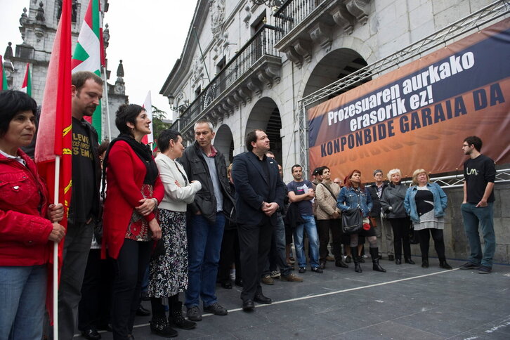 'Euskaldunon Egunkaria' itxi zuen prozesu judizialaren aurkako elkarretaratzea Martin Ugalde Parkean.