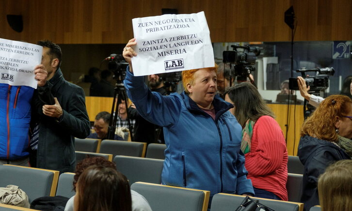 LABen protesta zaintza zerbitzu duina aldarrikatzen Jaurlaritzan Urkulluren aurrean.