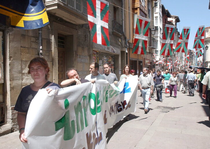 Gasteiz Txikiko bizilagunen protesta festetan PPk euskararen aurka erabilitako politikak salatzeko.
