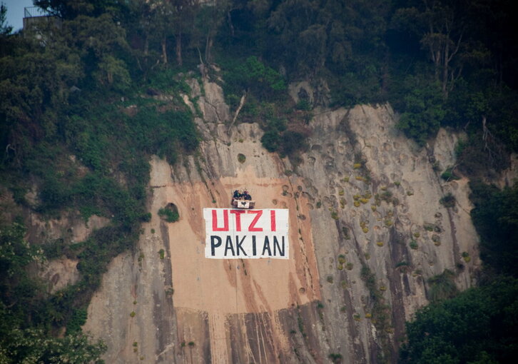 Haritz Gartxotenea eta Aritz Labianoren ekintza Zarautzen, Audientzia Nazionalera joateko erabakia ukatu ondoren.