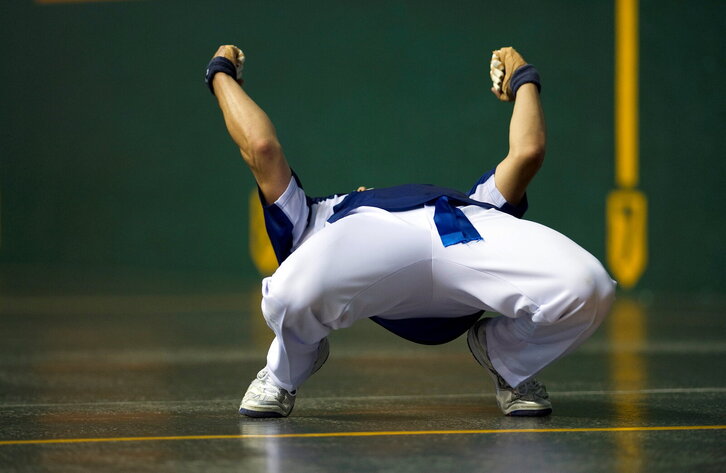 Final-laurdenetako partida Donostiako Atanon, Olaizola II eta Retegi II-ren artean. Irudian, Retegi II garaipena ospatzen.