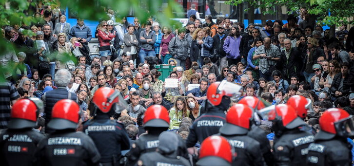 Erraustegiaren aurkako kanpalekua Donostian Ertzaintzaren presentziaren aurrean.
