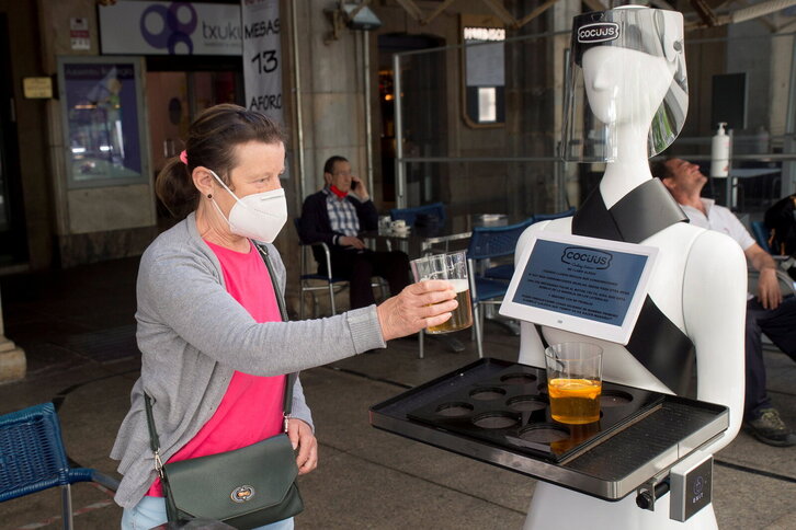 Covid-19. Arintze fasea Iruñean. Baviera taberna, robot zerbitzaria.