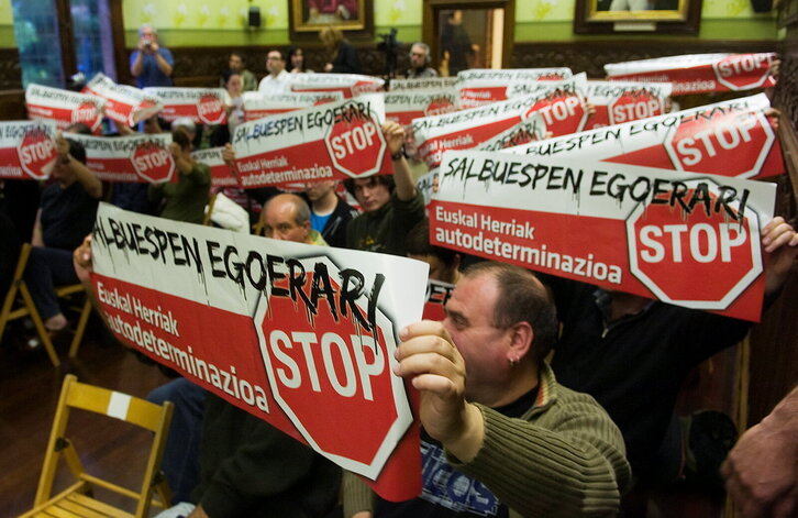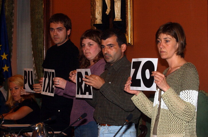 Iruñeko zinegotzi independentistak udal plenoan AuBren ilegalizazioa salatzen.