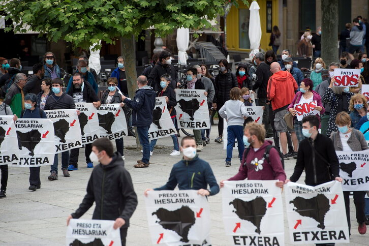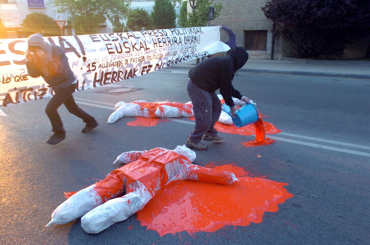 Euskal presoen senideen istripu baten antzezpena Iruñeko kaleetan.