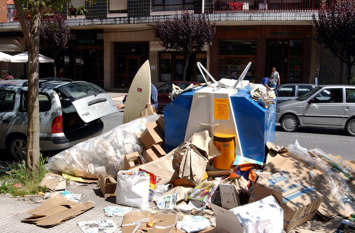 Mungiako kaleak zaborrez beteak Cespa enpresako langileen grebaren ondorioz.