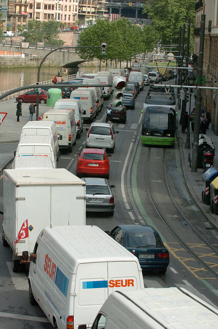 Seur enpresaren karabana Bilboko kaleetan, gasolinaren prezio igoerak salatzeko.