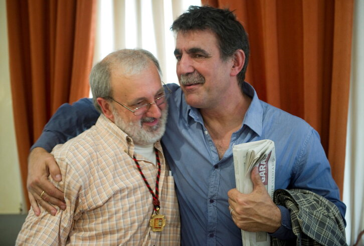 Pablo Barrio, Lasarte-Oriako alkate berria. Irudian Jose Mari Agirretxe, Barrio zoriontzen.