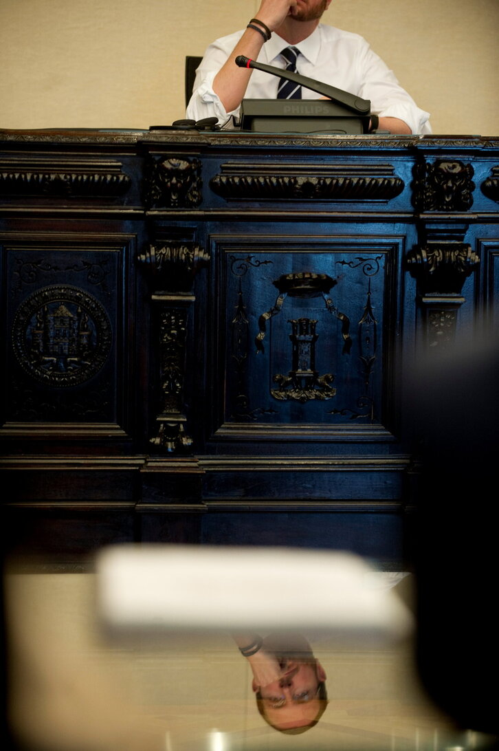 Andoni Buzquet (EAJ), Basauriko alkate. Irudian, udal plenoko giroa.