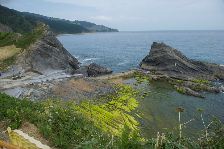Aritzatxuko hondartza Bermeon, neguko denboralea eta gero.
