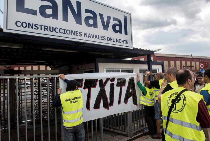 Bizkaiko langabetuen Asanbladaren manifestazioa La Naval-en, lan eskaintza baldintzen aurka.