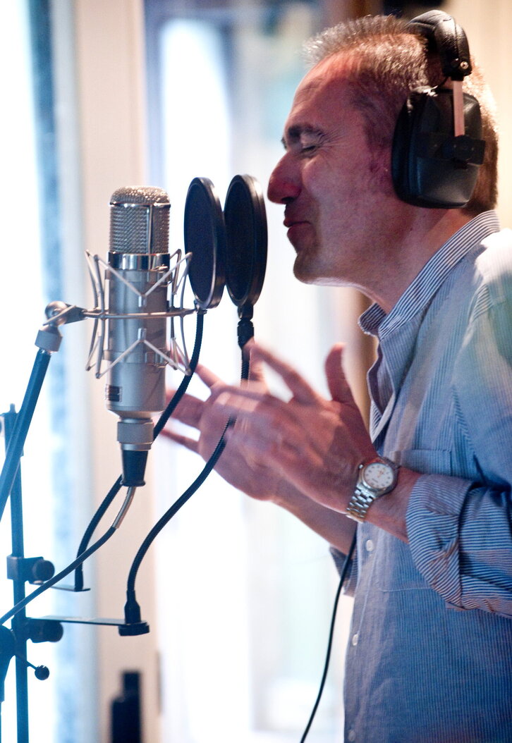 Javier Muguruza Azkarateko estudioetan bere hamargarren diskaren grabaketa lanetan.
