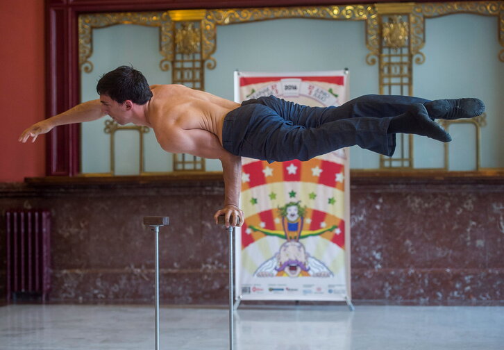 'Kalealdia'-ren aurkezpena Bilbon. Irudian, Ivan Gonzalezen akrobaziak.