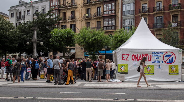 Zubietako errauste plantaren aurkako kanpaldi eta gose greba Donostiako Easo plazan.