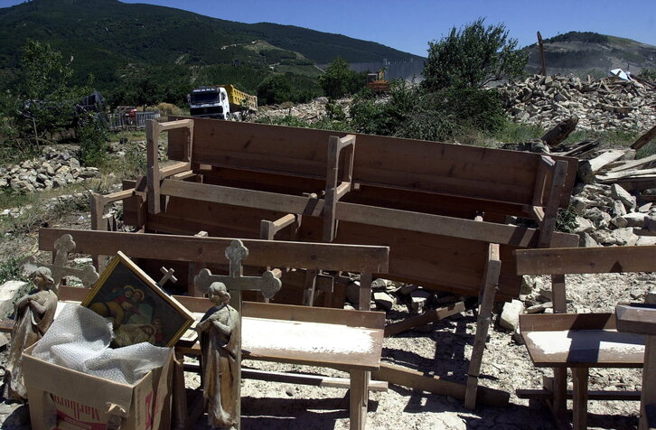 Itoitzko elizako altzariak etxe guztiak eraitsi ostean.