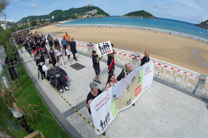 GuraSOSen manifestazioa erraustegiaren kontra Kontxa pasealekuan zehar.