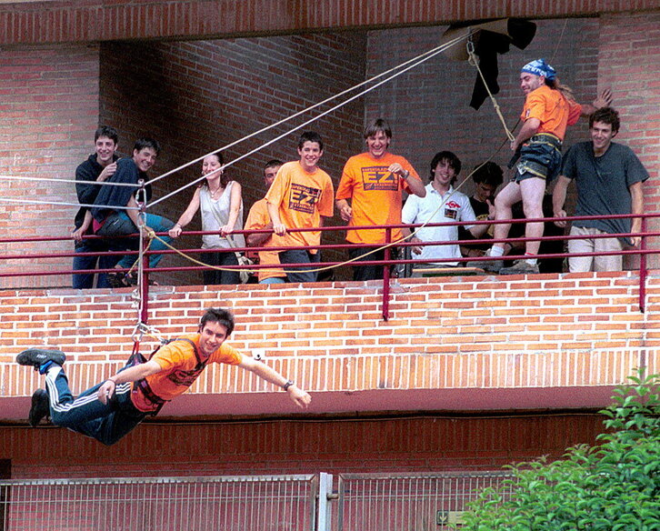 Errekaldeko festak Bilbon. Kukutzako gazteak tirolina batean.