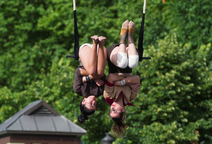 Kalealdia Bilbon. Irudian, akrobaziak Areatzan.