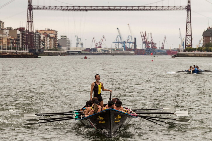 Arraunean Konponbidea ekinbideko ontziak Donostiako portura iristen.
