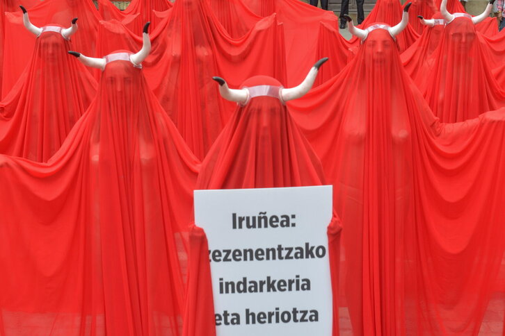 eta eta Anima Naturalis elkarteen protesta Iruñeko udal plazan zezenketen aurka.