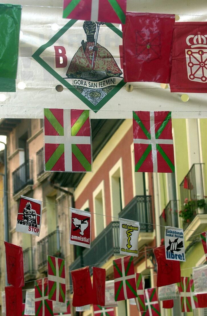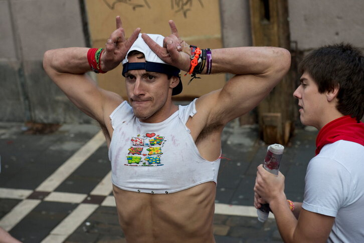 Sanferminak Iruñean. Irudian, jendea eta giroa Iruñeko kaleetan.