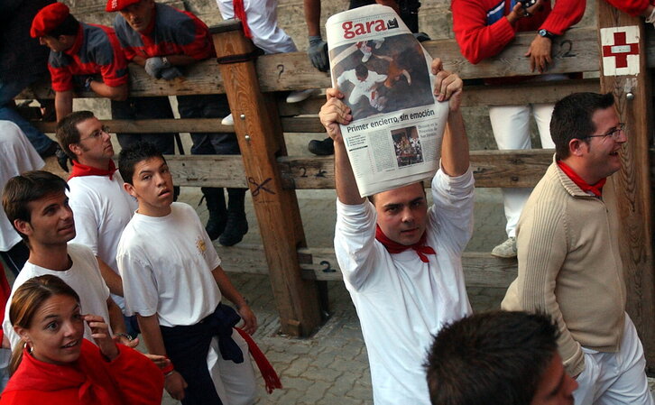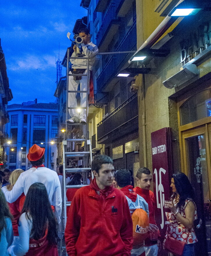 Entzierroa Iruñean. Argazkilarien itxaronaldia entzierroa hasi bitartean.